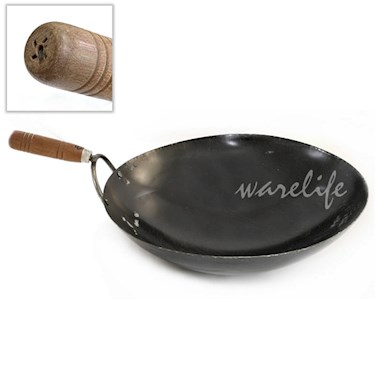 ◆材質為低碳鋼,俗稱黑鐵。因為其中含碳,所以炒出來的菜,會比不鏽鋼或其他金屬鍋具多一股炭烤的香氣,也就是所謂的「鑊氣」。