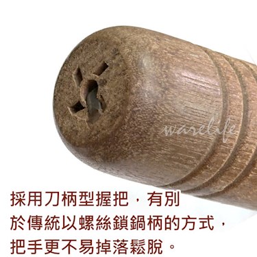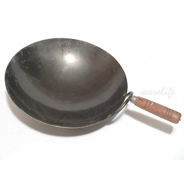 刀柄型握把,更不易鬆脫。比一般的黑鐵鍋厚,更加耐用。台灣製。傳熱快,有鑊氣。中式餐飲必備的設備。傳統中華炒鍋,又稱山東鍋、鐵炒鍋、中華鐵鍋。