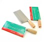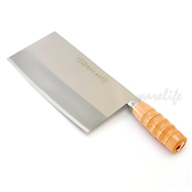 日本精純三合鋼製造,鋒利好切、可磨、韌性佳。台灣製。木柄防滑輕盈,順手好用。中式切片刀。將不帶骨食物切成需要大小。