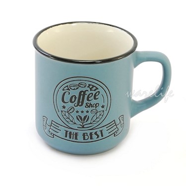 復古文青風。杯外刻印的文字圖樣,有立體感。可微波。中國製。半瓷。