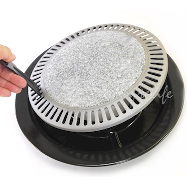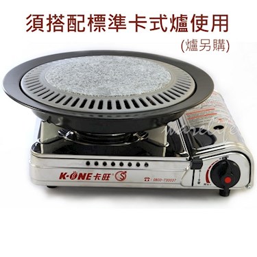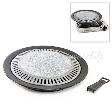 日本品牌,韓國製。天然石板可將烤肉肉汁鎖在裡面且不易焦黑,更加鮮嫩。油脂會滴入下方的盛盤,健康少油膩。搭配卡式瓦斯爐使用。