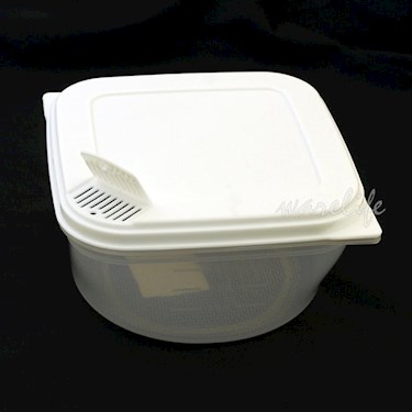 日本製。價格便宜,CP值高。可微波。食品級5號PP塑膠,耐酸鹼。寬口附可瀝水上蓋設計,從清潔食材、調理、微波加熱,一盒搞定。