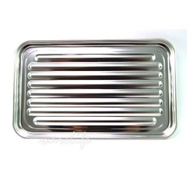 台灣製。蝴蝶牌。304不銹鋼。底部呈波浪狀,油脂可滴在盤中,少油多健康。捲邊,不易刮傷手。