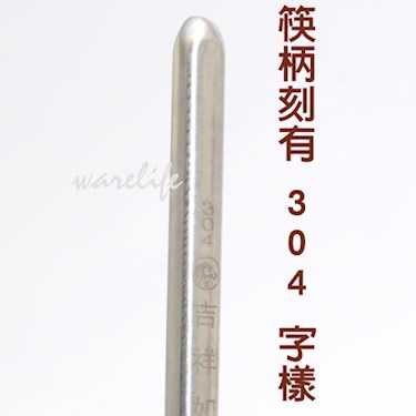 ◆高級304(18-8)不銹鋼筷,堅固耐用、安全衛生。無重金屬錳...等殘留的問題。握把處有刻字。並有刻304字樣代表為304不銹鋼。