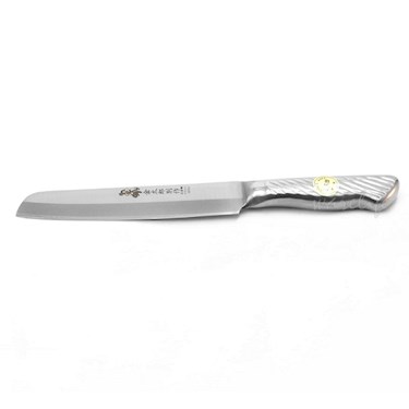 日本精純三合鋼製造,鋒利好切、可磨、韌性佳。刀面磨砂處理,不易沾粘食材。全鋼手柄,無接縫,好洗不斷裂不易藏汙納垢。