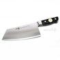 日本精純三合鋼製造,鋒利好切、可磨、韌性佳。刀面磨砂處理,不易沾粘食材。一體成型的刀身,鍛造成型的口金,能加強刀子的堅固與握刀的穩定。用途廣泛,可用來當菜刀,也可用來剁雞骨或鴨骨。