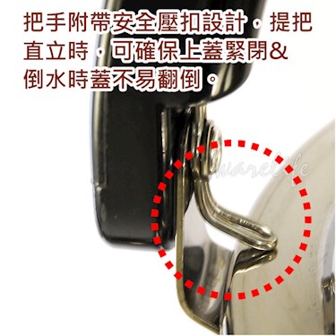 ◆把手附帶安全壓扣設計,提把直立時,可確保上蓋緊閉&倒水時蓋不易翻倒。