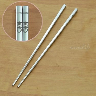 握柄上有雷射喜字,適合婚禮喜宴當贈品用,環保又喜氣。304不銹鋼白鐵筷,堅固耐用。中空,具隔熱效果。前端有雷射止滑設計。方型筷身,不易滾動。附精美夾鏈袋。攜帶方便。