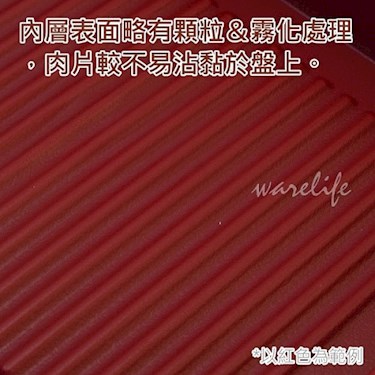 ◆內外均為霧面,質感佳。內層表面略有顆粒&霧化處理,肉片較不易沾黏於盤上。
