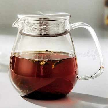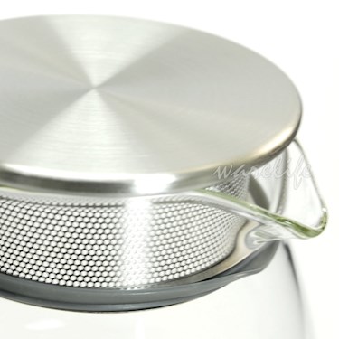 上蓋 304不鏽鋼,內緣為不鏽鋼沖孔式濾網,輕鬆過濾茶渣、不易變形,而且不需再加茶網,壺內空間大,可讓茶葉或花茶充分伸展。耐熱玻璃材質,耐高溫、耐酸鹼,味道不易殘留。可當花茶壺、咖啡壺。大口徑,好洗。