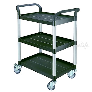 台灣製。在餐廳、飯店、辦公室甚至是居家都非常普及,因為它輕便且耐重。可用來送餐,也可用來放碗盤廚餘,輕輕鬆鬆分門別類。
