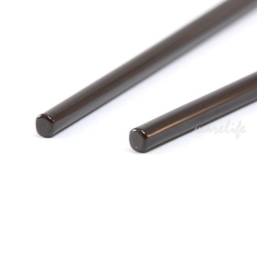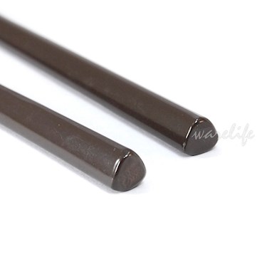 ◆又稱美耐筷。前端方圓。後端三角形,放在桌面不易滑動。亮面本體。前端直徑約2mm