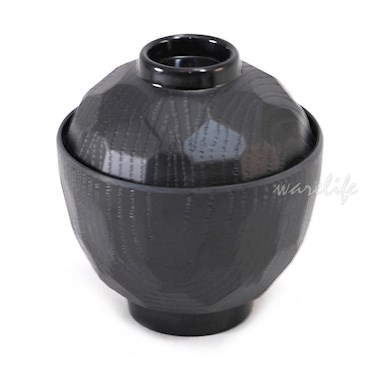 日式風格,外表為龜殼狀樹紋,碗內與上蓋內為光滑面。