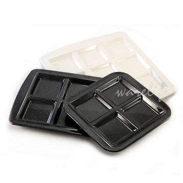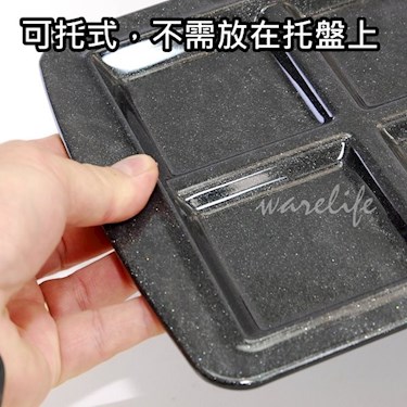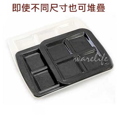 台灣製。單面或雙面有銀色的細點,日本四星級飯店Buffet使用此類餐盤。輕巧、耐摔、冷熱兩用,下方可不再墊托盤直接當托盤使用。食材分隔不串味。可堆疊,方便收納。一級美耐皿。耐溫+120℃、不易燃、耐衝擊。