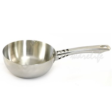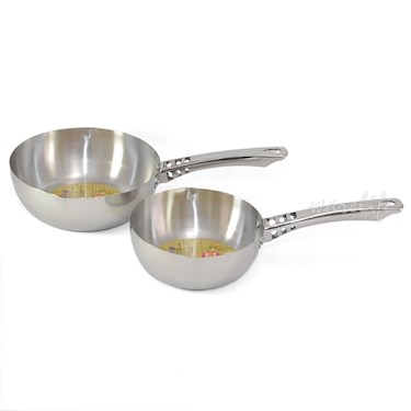 台灣製營業用304不鏽鋼雪平鍋。把手為304不銹鋼中空斷熱柄,比木柄耐用耐高溫。可用於快速爐、電磁爐、洗碗機。