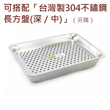 ◆自助餐、小吃攤販(鹽酥雞、滷味...)的生財工具。可搭配「台灣製304不鏽鋼長方盤(深/中)」(另購),將食物油炸後散熱滴油。或是作為老人茶盤。