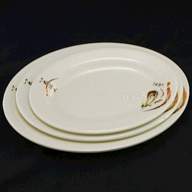 台灣制。一級美耐皿橢圓盤。耐溫-20~+120℃、不易燃、耐衝擊。台灣感性、台灣小吃店餐具。