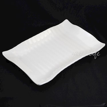 4215 美耐皿長方翹角波浪盤(乳白) 長方菜盤