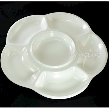 978 美耐皿六味梅花盤(乳白)-六格盤