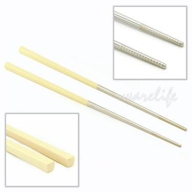 台灣製。316不銹鋼白鐵筷、耐熱塑膠握柄。堅固耐用不易燙手又好握。四方型霧面握柄,不易留下指痕,不易滾動。前端有雷射止滑設計,不易藏汙納垢。